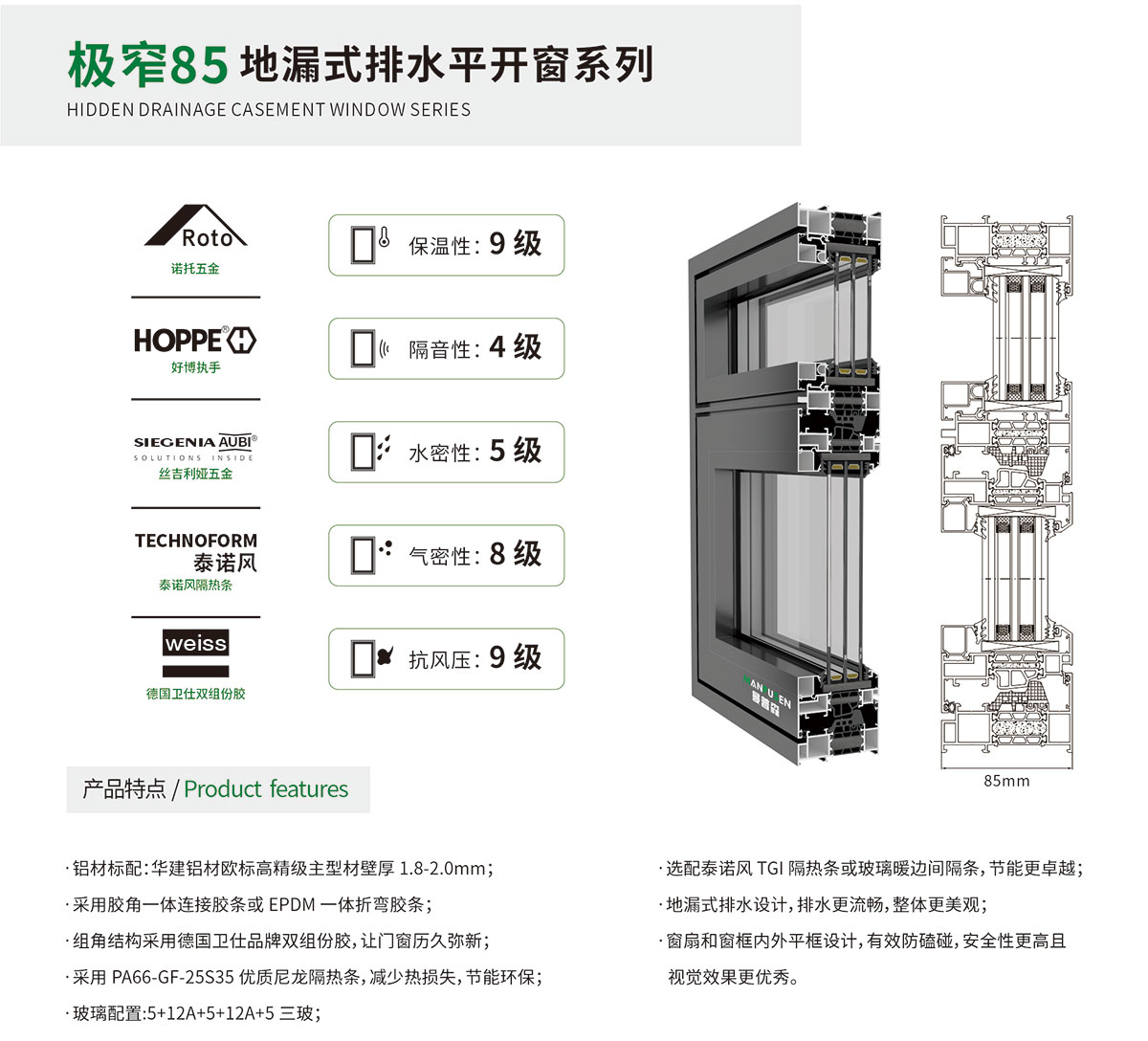 曼普森承诺,严格把控所有原材料供应,与山东华建铝材、江阴海达胶条,德国泰诺风隔热条,德国卫仕双组份胶、德国好博五金德国诺托五金、丝吉利娅五金等国内外优秀的公司达成长期战略合作关系。